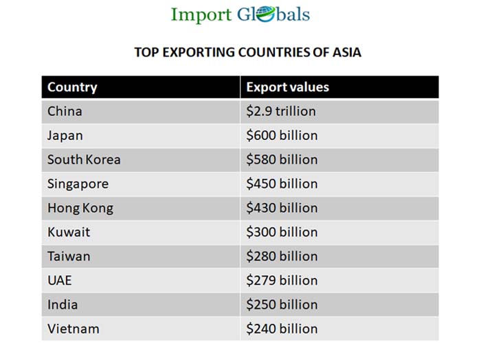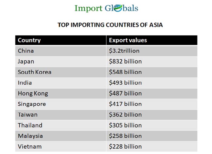 • Vietnam – Last but not least Vietnam is the top tenth import destination of Asia with an import trade value of 228 billion US dollars.