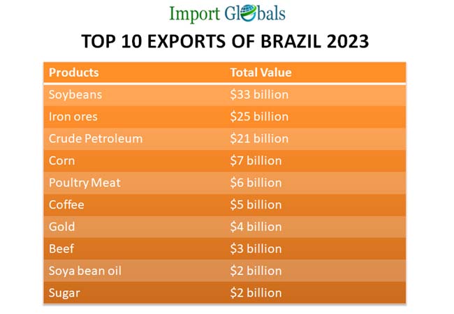 The production and consumption rate of the industrial and agricultural sectors controls the overall amount of products to be exported. Along with the consumer consumption rate the increased investments of the government also promote the export trade rates. As per the Brazil Export Data, the top 10 exports of the nation with its trade values of 2023 are discussed below,