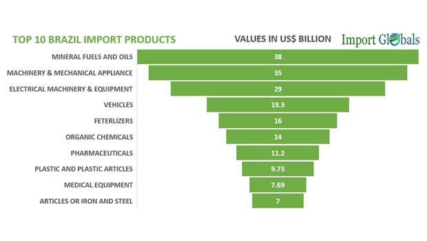 According to Brazil Import Data, the top products that are imported by Brazil are listed below-