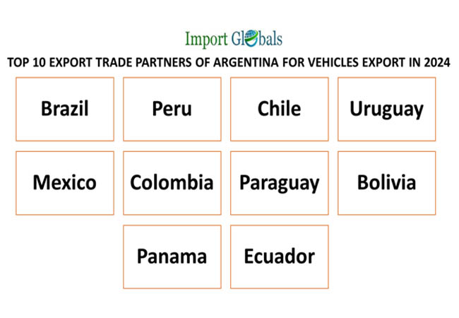 Ans. By subscribing to Import Globals you can get a detailed trade analysis of the vehicles export of Argentina in 2024.
