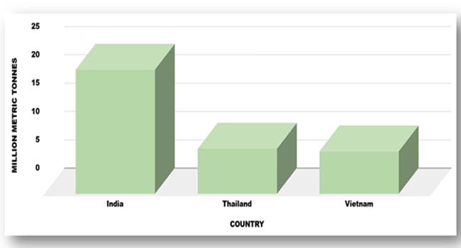 Ans. India is the largest rice exporter, shipping around 22 million metric tons annually.