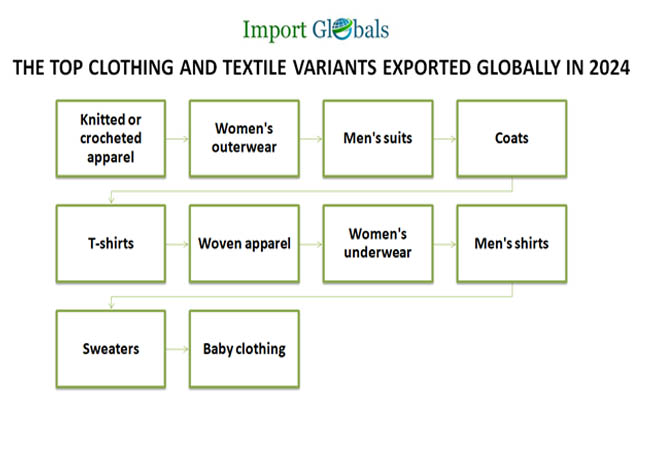 Que. Name the top globally exported Clothing and Textiles variant of 2024.