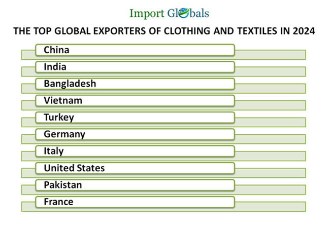 Ans. China is the top global exporter of clothing and textiles in 2024.