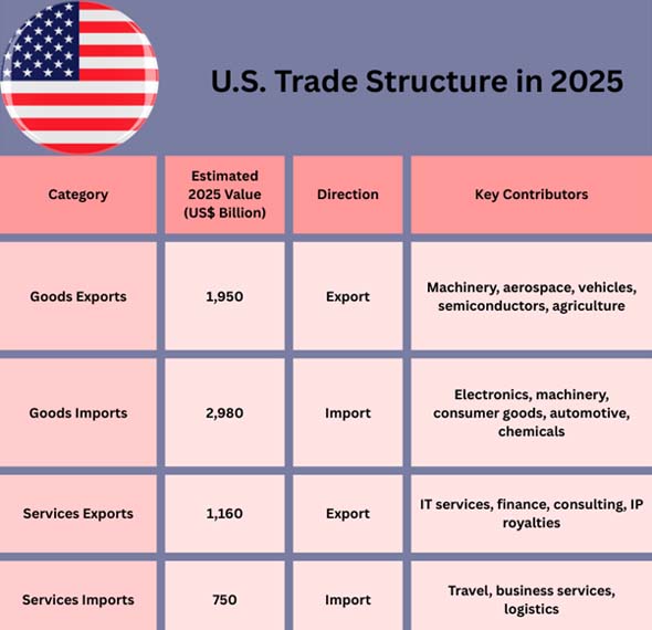As per USA Import Trade Analysis by Import Globals, trade in digital goods is growing faster than trade in physical commodities, which is beneficial for the U.S. Royalties on intellectual property, software subscriptions, consultancy fees, and platform earnings are the main ways that America gets money from services. Countries can't copy this way of leading, which gives the U.S. a long-term structural edge.