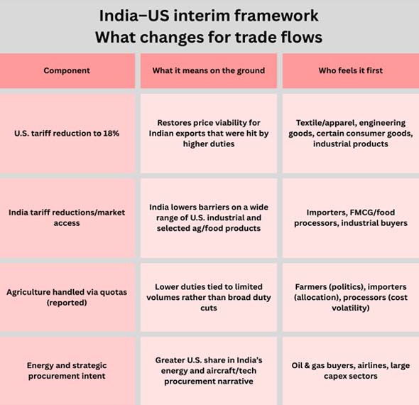These are not "policy headlines" for Indian firms. They change the prices, compliance, sourcing options, and where the next wave of exports can realistically come from. This includes textiles, jewels, pharmaceuticals, auto parts, IT services, and processed foods.