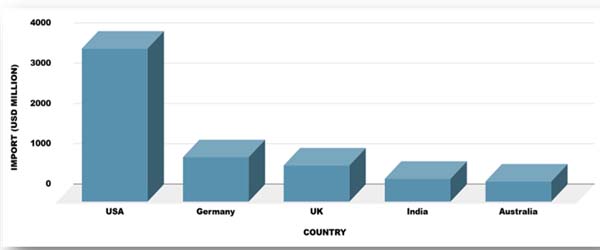 Ans. The USA, Germany, India, the UK, and Southeast Asian nations are among the top importers.