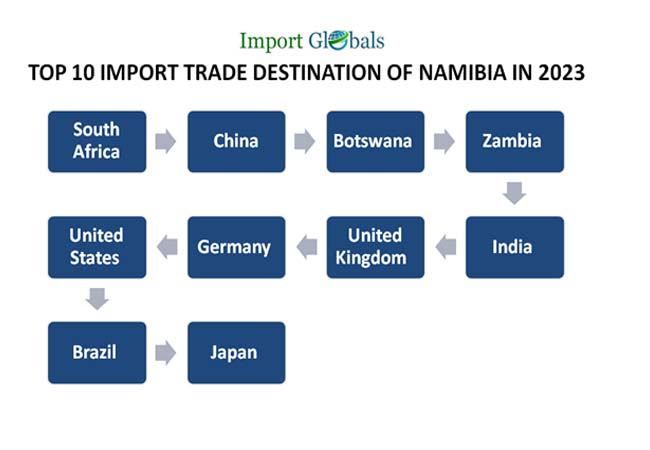 Que. Who is the top import trade partner of Namibia in 2023?