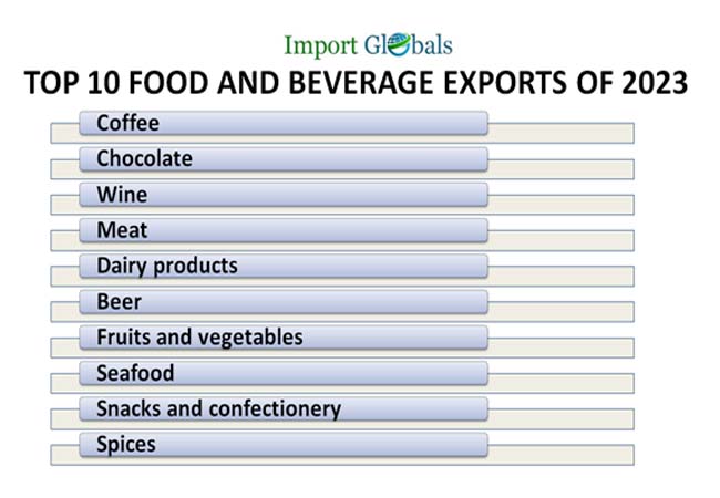 Ans. Coffee is the top globally exported product of food and beverage in 2023.
