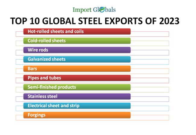 According to the Global Steel Customs Data, the top 10 global steel exports of 2023 are,