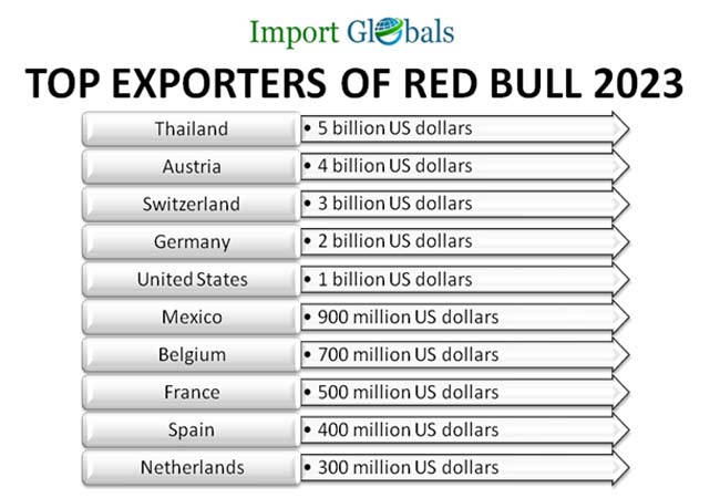 The increased production of Red Bull is leading to a higher rate of its exports. As per the Global Red Bull Export Data, the top 10 exporters of this commodity with its trade values of 2023 are discussed below,