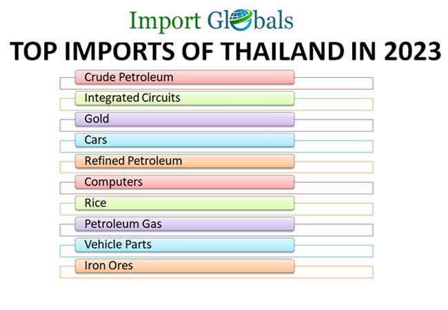 As the necessities of the people within the region are increasing with time, the government authorities are bound to import more products from top traders to stabilize the economy. As per the Thailand Import Data, the top 10 imports of the nation in 2023 with its trade values are discussed below,
