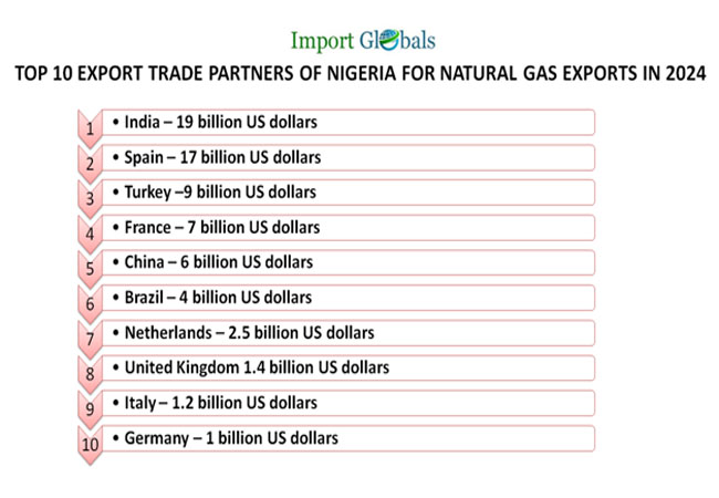 • Turkey – According to the Turkey Import Data, the valuation of the natural gas exported from Nigeria in 2024 – 9 billion US dollars.
