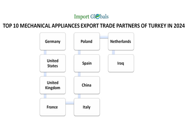 • Germany – As per the Germany Import Data, the valuation of the mechanical appliances exported from Turkey in 2024 – 3.2 billion US dollars.