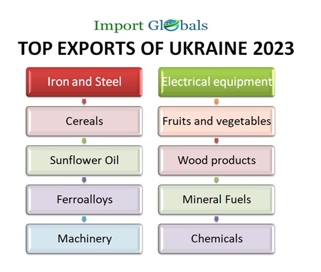 Ans. The top exported product of Ukraine in 2023 is Iron and steel worth 14 billion US dollars.