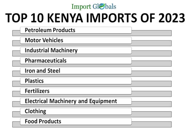 According to the Kenya Import Data, the top 10 key imports of the nation in 2023 are,