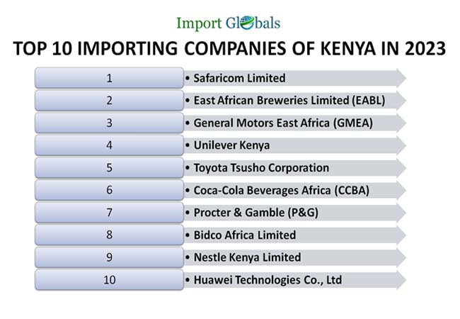 The top manufacturing industries leveraging the stability of the export and import industries of the nation not only fosters economic growth but also maintain the sustainable stability of the country’s GDP. According to the Kenya Customs Data, the top importing companies of the nation in 2023 are,