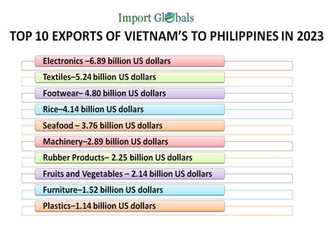 Ans. The export trade value of Vietnam to the Philippines in 2023 is 7 billion US dollars.