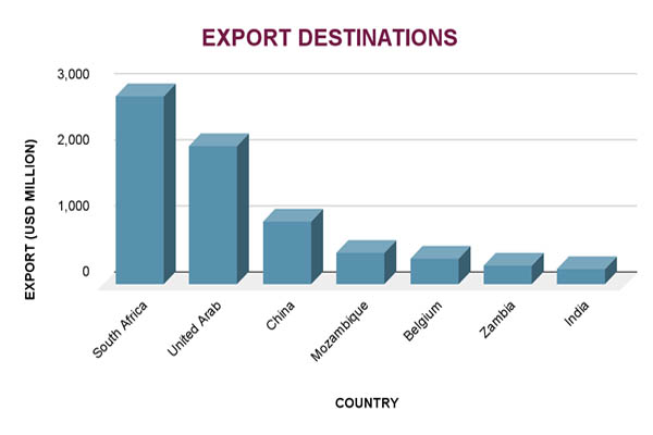 Ans. South Africa is the leading export destination for Zimbabwean goods.