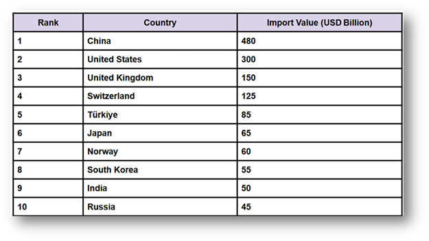 Due to decreased energy import prices and tempered demand for raw materials, Europe's overall import value is projected to be about USD 7.0 trillion in 2024, a minor decrease of almost 3% from 2023 values. As per Europe Import Export Data by Import Globals, energy alone makes up almost 20% of all imports, with crude oil, natural gas, electronics, and machinery continuing to be the top import categories. China, the United States, Russia, and Norway are the EU's top import partners. Europe maintains a balanced trade flow despite the slight decline in import values, with an expected USD 200 billion overall goods trade surplus for the year, up from a deficit two years prior. This surplus demonstrates Europe's robust internal market and great export competitiveness.