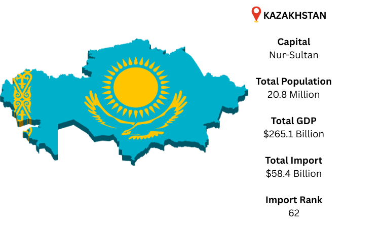 Yes, Kazakhstan is strategically located between Europe and Asia, and its growing GDP and trade links make it ideal for business. Kazakhstan’s trade data and import data show a consistent demand for industrial goods, and import export data from a verified data provider supports strong economic potential for new market entrants.