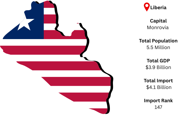 Liberia ranks as the 147th largest importer globally. Despite its modest size, Liberia’s import market is vital to its economy due to its dependency on foreign goods for energy, food, vehicles, and industrial equipment as per Liberia Import Trade Statistics.