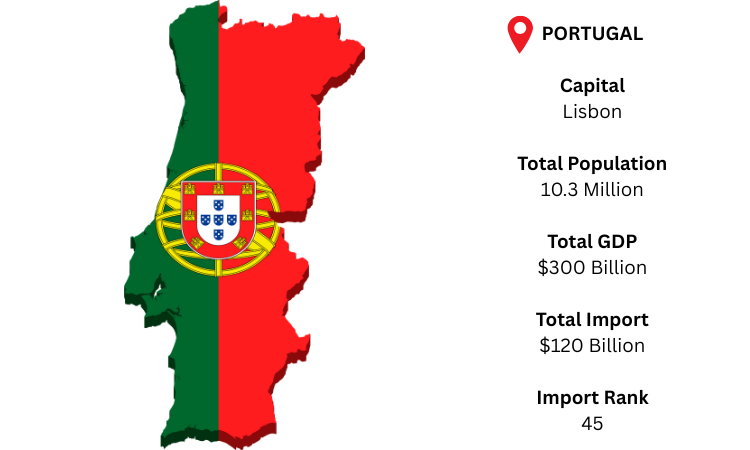 Portugal's status as a gateway to Europe's Atlantic trade routes shapes its import-based economy. Its industrial foundation is mostly dependent on automobiles, fuels, electronics, and machinery. The capital is Lisbon, and the majority of marine imports are handled by ports like Lisbon, Porto (Leixões), and Sines. As per Portugal import data, Portugal, which has a population of over 10.3 million and a GDP of nearly USD 300 billion, is expected to import roughly USD 120 billion in total, demonstrating its strong ties to European supply chains.
