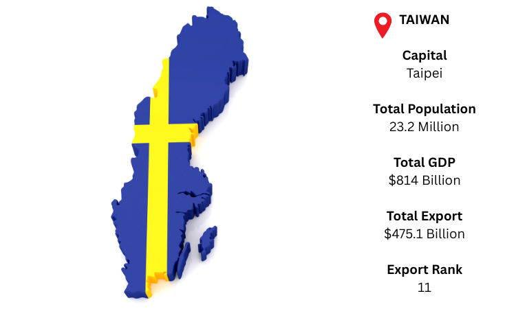 Taipei, the capital of Taiwan, drives a specialized export economy focused on semiconductors, electronics, and machinery. With a population of 23.2 million and a GDP of USD 814 billion, as per Taiwan export data, Taiwan posted record-breaking export revenues of USD 475.1 billion, marking its second-largest year ever.