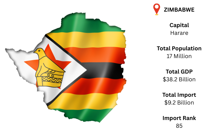 With its capital in Harare, Zimbabwe is a landlocked African country that shares borders with South Africa, Mozambique, Zambia, and Botswana. According to Zimbabwe import data, its GDP was around USD 38.2 billion in 2023. A total of around USD 9.2 billion was imported by the nation, which reflected rising demand for food, equipment, and gasoline.